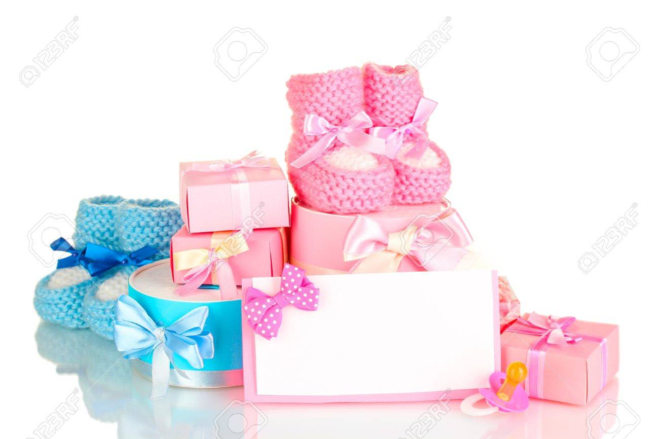 Pink Baby Boots, Pacifier, Gifts Stock