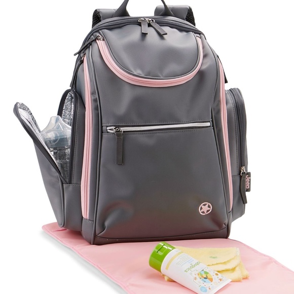 Back Pack Diaper Bag, Grey/Pink : Baby jeep diaper bag pink